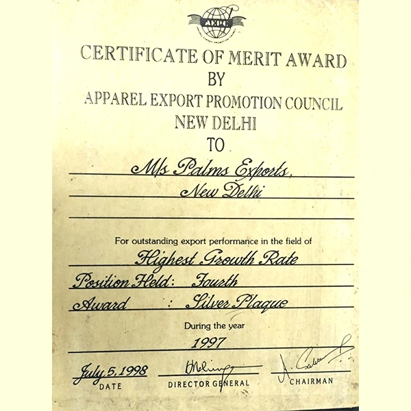 The company’s direction and technical expertise were shaped by Mr. Parveen Malhotra, who completed specialized garment training in Japan in 1980. His ability to speak Japanese fluently played a key role in establishing long-standing relationships with buyers and positioned Palms Exports as a trusted and quality-oriented supplier.